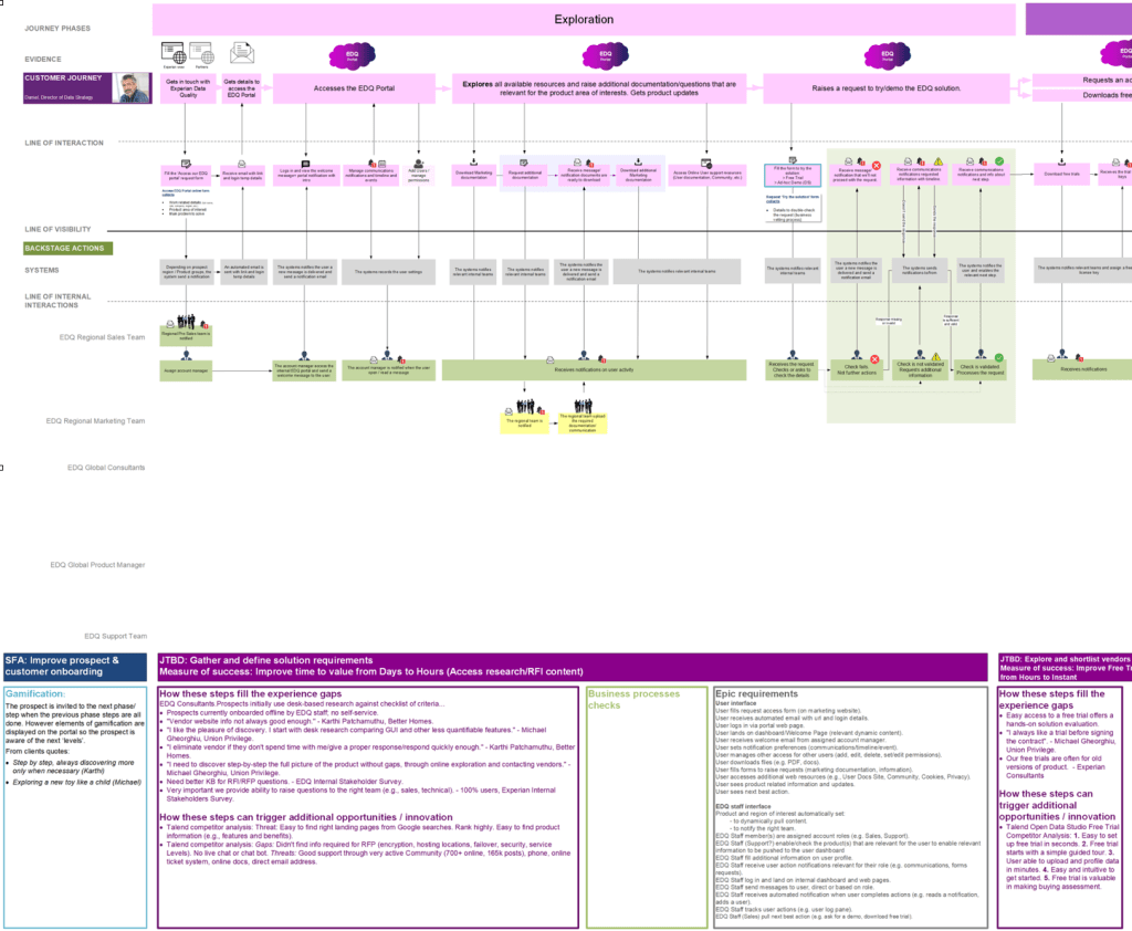 The Global Data Quality IT Company provides Data Management and Data Quality solutions tailored for retailers, public sector entities, and financial institutions. Following a thorough evaluation of sales and customer satisfaction metrics, the consulting and product management teams concluded that the Company was experiencing a notable decline in renewal rates due to subpar customer and user experiences. We believed that implementing a self-service model could enhance the onboarding process and elevate the overall user experience. To confirm these insights and propose a viable solution, they appointed me as the UX Lead to carry out the necessary actions.