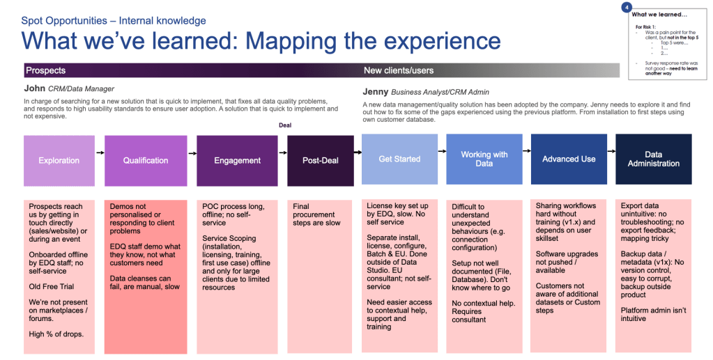 While initially it was believed that the main pain-points of the customer lifecycle occured during the onboarding phase, from the internal discovery emerged gaps and opportunities since the early stages of the customer journey.