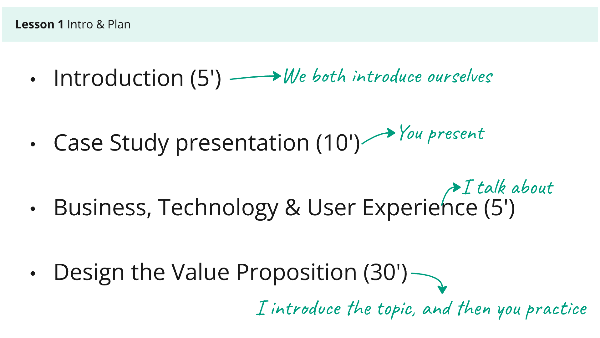 - Coaching on running a workshop to gather the business value proposition and impact on users