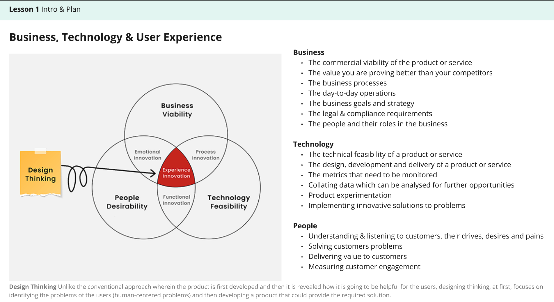 The participant has been conducted through a typical complete Product Design process, from understanding businesses and their users/customers, defining tasks and features, conceptualise and sketching the digital product and finally test it.