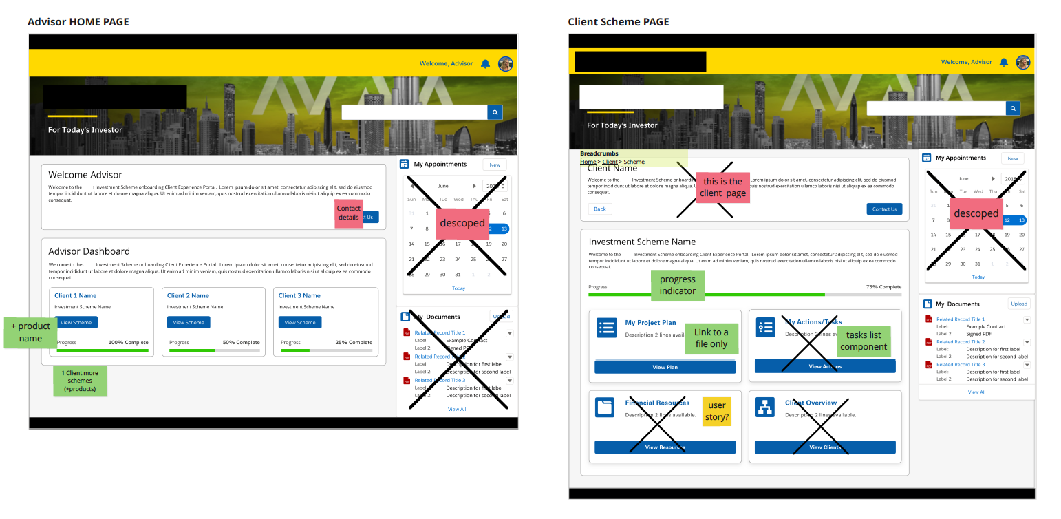 - Accordingly assessed the dashboard and landing pages designs, and designed new high-fidelity wireframes;