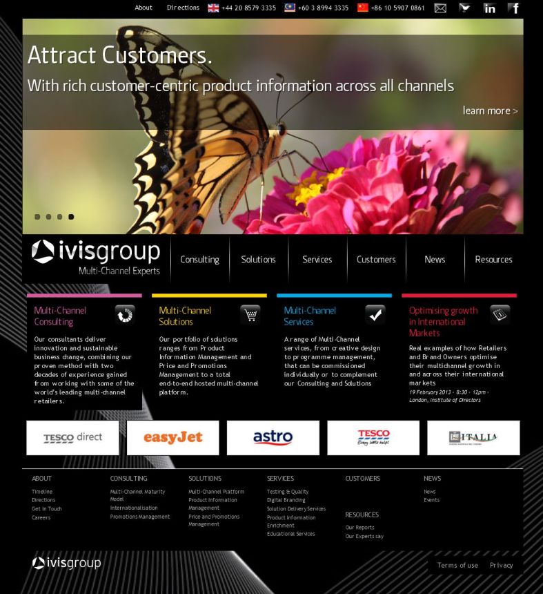 In order to emphasize the transition from an IT company to a multi-channel expert consultancy firm, I have suggested to align the content in order to emphasize how the firm could help retailers to improve their presence on all channels, rather than just offering internally-developed IT solutions. As a consequence, it was necessary to add a ‘Consulting’ section, to enable visitors to download SME Reports previously circulating via email only, and to update terminology and tone of voice accordingly. Finally, while aligning the website to the brand visual identity, I have suggested to focus on visual elements and colours so to suggest the presence of consultants rather than technicians.